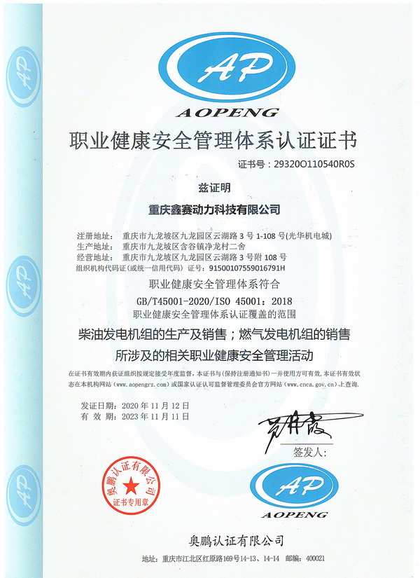 职业健康管理体系证书