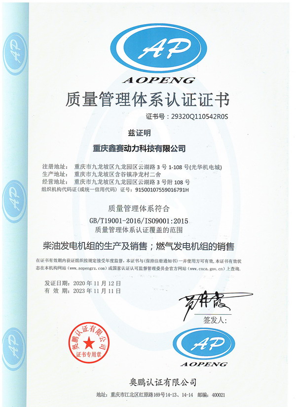 质量管理体系证书